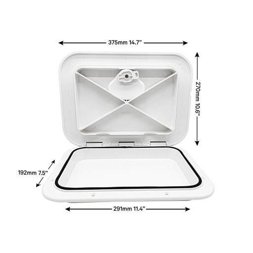 Luk o wymiarach 270 x 375 mm. Wykonany z białego tworzywa ABS odpornego na promieniowanie UV i słoną wodę.