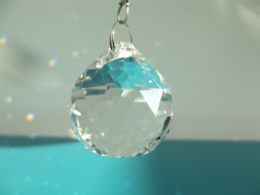 OPIS AUKCJI - Kryształ kula kryształowa o średnicy 3 cm. Może być zawieszką do żyrandoli bądź elementem wystroju okna, wnętrza. Kryształ wysokiej jakości, dający piękny błysk.