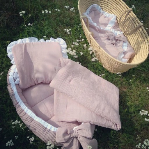 POŚCIEL Z MUŚLINU ORGANICZNEGO + PODUSZKA Z FALBANKĄ