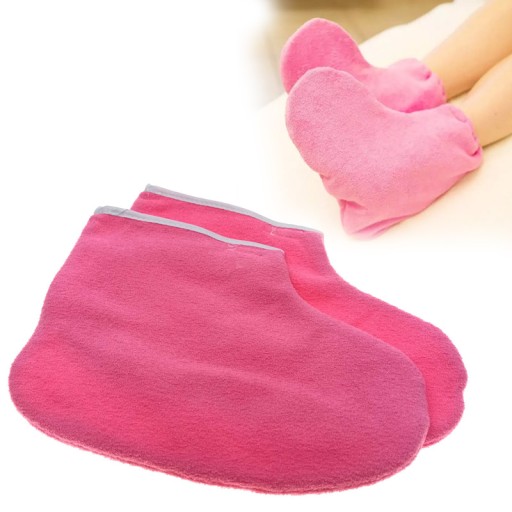 Skarpetki wykonane z miękkiego materiału typu frotte niezbędne podczas wykonywania zabiegów parafinowych i odżywczych na ciało.