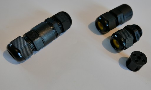 - CZARNA MUFA M20 do trwałego i bezpiecznego połączenia dwu lub trzy -żyłowych przewodów elektrycznych.