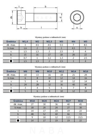 ŚRUBA M5X80 Z ŁBEM WALCOWYM, Z GNIAZDEM SZEŚCIOKĄTNYM IMBUS