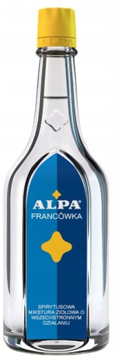 Skład Alcokol Denat., Aqua, Menthol, Ethyl Acetate, Ethyl Formate, Parfum, Linalool, Citral, Eugenol, Cinnamal, d-Limonene Wskazania Bóle stawów, mięśni i nerwobóle oraz jako uzupełnienie leczenia podstawowego, Profilaktyka odleżyn - roztwór, Usuwa zmęczenie po wysiłku fizycznym, idealna do masażu. Działanie ALPA Francówka to spirytusowa mikstura ziołowa o wszechstronnym działaniu stworzona na bazie wyciągów roślinnych i olejków eterycznych o działaniu przeciwbólowym, przeciwzapalnym oraz regenerującym. Dawkowanie preparat przeznaczony do użytku zewnętrznego stosować w postaci okładów bądź do masażu.