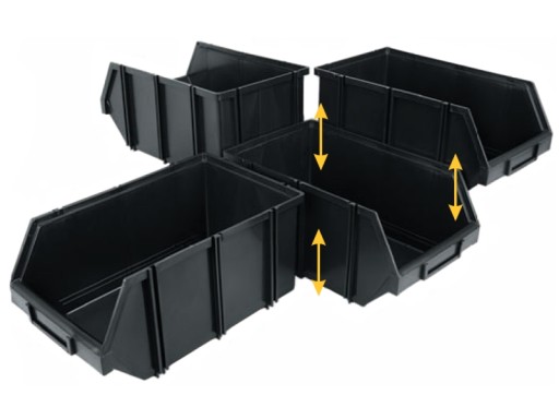 Konstrukcja pojemników MODUŁBOX 3.1 i 4.1 umożliwia łączenie pojemników "plecami", co ułatwia tworzenie dwustronnych ścianek.