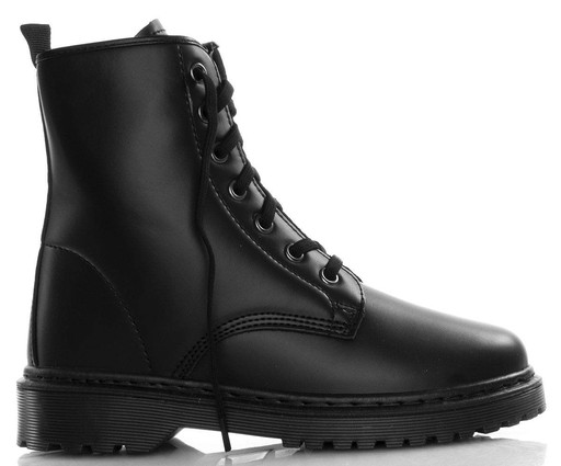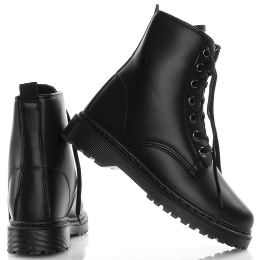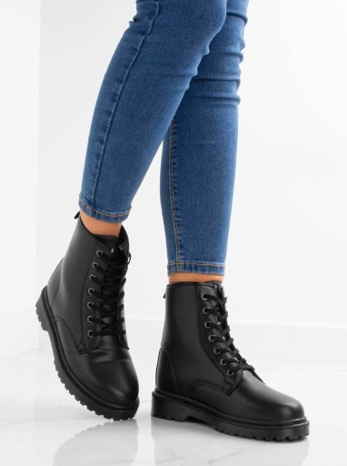 Czarne wysokie trapery wykonane ze skóry ekologicznej, sznurowane. Model solidnie wykonany na profilowanej podeszwie. Wnętrze wyłożone tkaniną. Klasyczne i do codziennych stylizacji!