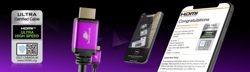 Kabel Spacetronik posiada certyfikat Ultra High Speed HDMI Certified Cable gwarantujący, że przewód spełnia wysokie standardy w zakresie wydajności i jakości wyznaczane przez twórców technologii HDMI.