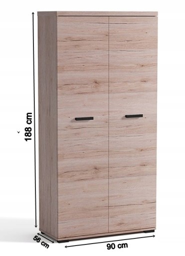 - Szafa K10: szerokość: 90 cm, głębokość: 56 cm, wysokość: 188 cm