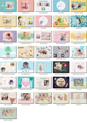 Metryczka na wiele okazji? Tak! Przygotowaliśmy dla Ciebie aż kilkadziesiąt różnych propozycji, z których stworzysz niezapomniane fotoobrazy! Na urodziny, na chrzest, na komunię itp.