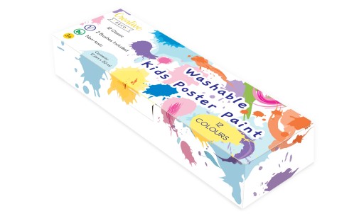 Każdy zestaw marki Creative Deco składa się z 12 nietoksycznych, zmywalnych farb o pięknych kolorach dla dzieci w każdym wieku. Dodatkowo w każdym pudełku znajdują się dwa pędzelki - mały i duży, dzięki którym dziecko może malować zarówno małe detale jak i większe kształty.