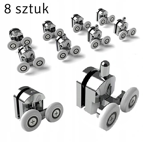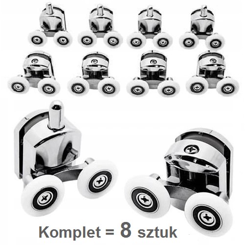 - Komplet 8 solidnych, chromowanych rolek podwójnych do kabiny prysznicowej.