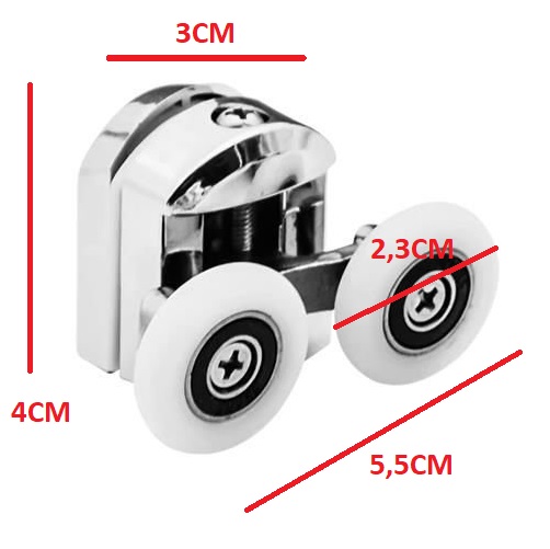 - UNIWERSALNE – rolki zostały wykonane z chromu, tworzywa sztucznego, nylonu oraz stali odpornej na korozję. Pasują do wszystkich kabin prysznicowych w których zastosowano tego typu łożyska kulkowe. Rolki wraz z kółkami dzięki uchylnej konstrukcji dopasowują się do kształtu prowadnicy. Pasują do kabin zarówno kwadratowych jak i półokrągłych.