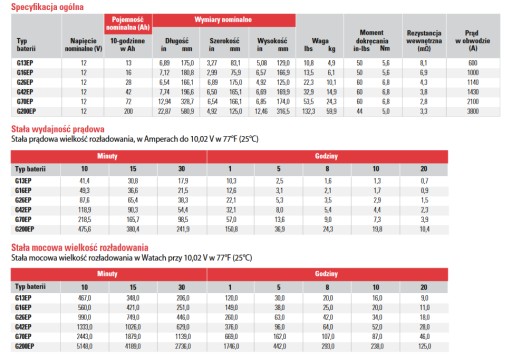 - Wysoka odporność na głębokie rozładowania