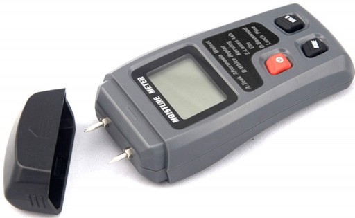 - Obsługa wilgotnościomierza jest bardzo prosta! Zdejmujesz kapturek ochronny i dociskasz elektrody mierzące do kontrolowanego materiału (drewna).