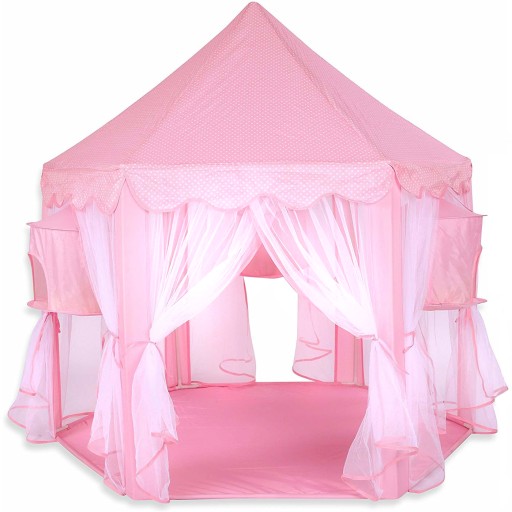 Piękny namiot, w postaci rozkładanego sześciokątnego pałacu, który zadowoli każdą małą księżniczkę.