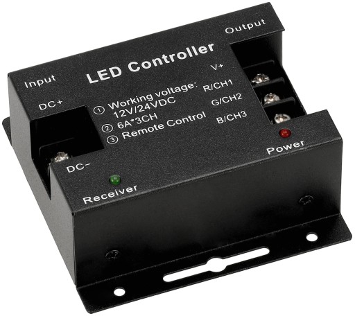 ✅ Montaż sterownika jest bardzo prosty - należy podłączyć zasilanie 230V do zasilacza, a następnie łączymy wychodzące napięcie 12V ze sterownikiem (wejście 12V), a z drugiej strony wyprowadzone zaciski RGB+ łączymy z taśmą LED.