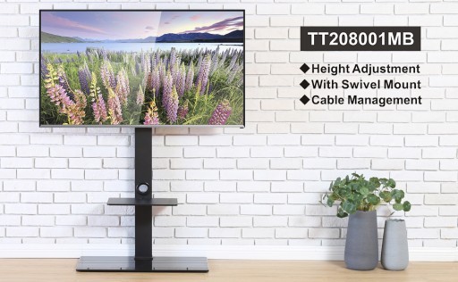 WIELOFUNKCYJNY - Stojak na telewizor można obracać o 70 ° w lewo i w prawo i ma 12 poziomów wysokości od 1133 do 1455 mm, co zapewnia optymalne wrażenia wizualne. Zarządzanie kablami z tyłu, aby ukryć niechlujne kable
