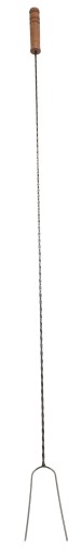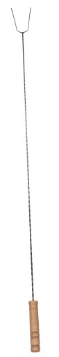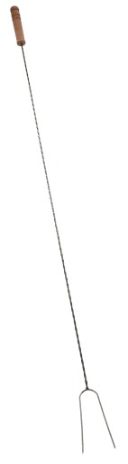 - Widelec został wykonany ze stalowego pręta, a jego odpowiednia długość pozwala na zachowanie bezpiecznej odległości od ognia.