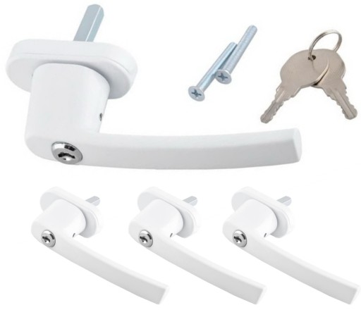 4x BIAŁA KLAMKA DO OKNA OKIENNA ZAMEK KLUCZYK