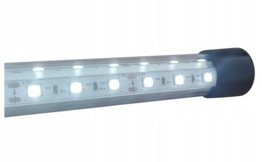 Oświetlenie wykonane na diodach typu SMD 5050 o barwie światła nocnego (niebieskie).