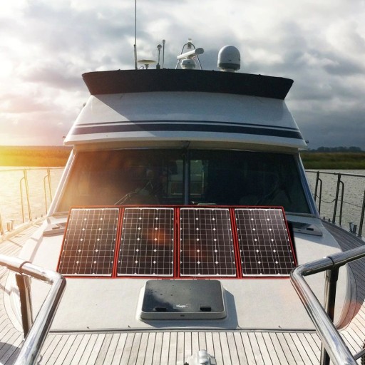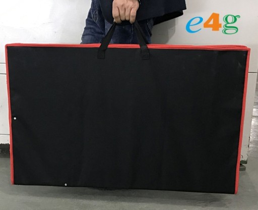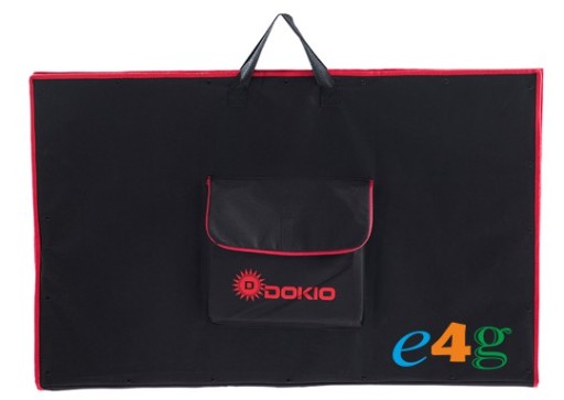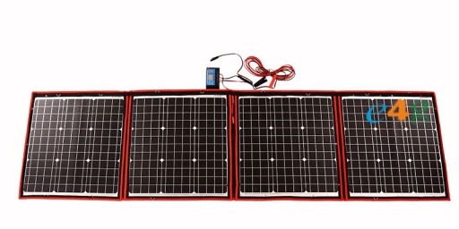 Przenośna, składana na 4 części i lekka ładowarka solarna sprawia, że bardzo łatwo zapakować ją do samochodu. Widoczne pętle/uchwyty montażowe rozmieszczone na krawędziach panelu zastosowano w celu przymocowania do stałych elementów konstrukcyjnych jak przyczepa kempingowa, namiot itp.