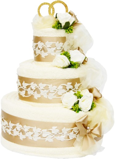 Zapraszamy do zakupu oryginalnego i eleganckiego prezentu jakim jest tort z ręczników. To doskonały prezent na ślub, rocznicę ślubu, urodziny, podziękowania dla rodziców. Doskonały, jako dodatek do "koperty" i prezent zamiast kwiatów. Tort z ręczników jest tak piękny jak bukiet, ale będzie cieszył oko dłużej. To bardzo ładny i równocześnie praktyczny prezent. Po jego rozwinięciu obdarowani będą się cieszyć miękkimi, grubymi i chłonnymi ręcznikami.