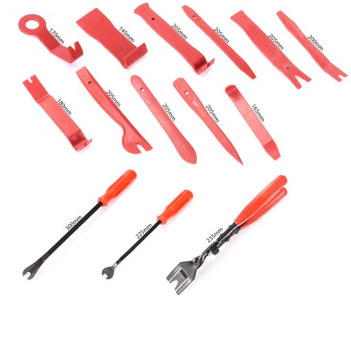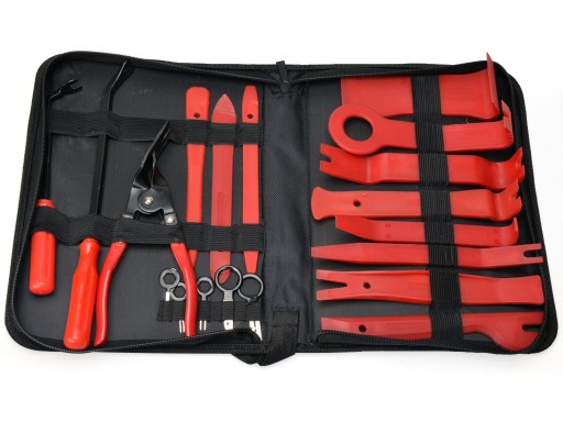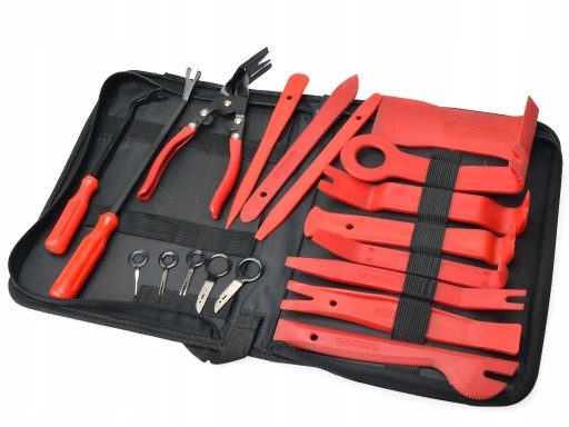 - Specjalistyczny zestaw zawierający ściągacze i klucze do demontażu radia, kostek, listew, spinek, oraz tapicerki w samochodach i urządzeniach technicznych.