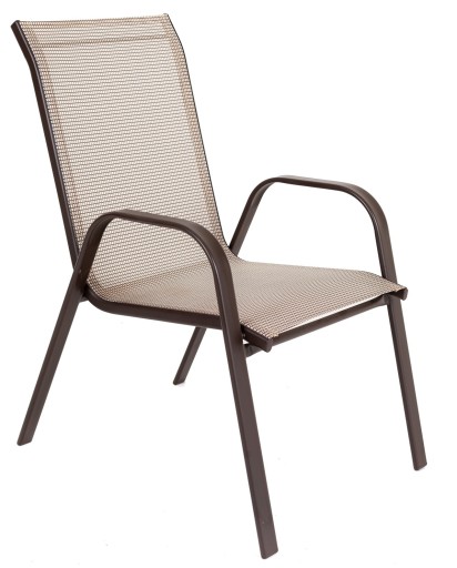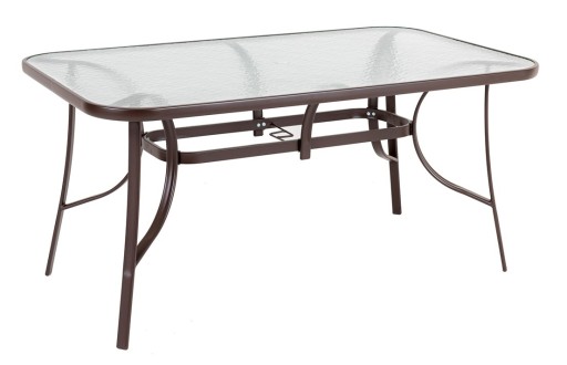 ZESTAW MEBLI OGRODOWYCH idealny do Twojego ogrodu. Stelaż został podwójnie lakierowany proszkowo, co idealnie przystosowuje ten produkt to zastosowania wewnątrz jak i na zewnątrz. Siedzisko krzesła oraz oparcie zostało zrobione z jasno brązowego, elastycznego obicia tekstylnego tak, aby maksymalnie zwiększyć wygodę. Posiada ono dwa oparcia boczne. Użyte materiały nie wymagają częstej konserwacji, są odporne na warunki pogodowe i nie wymagają specjalnych środków do pielęgnacji. Nóżki są dodatkowo zaopatrzone w nakładki z tworzywa sztucznego.Stół posiada blat z przezroczystej hartowanej szyby o gr. 5 mm, z otworem na wstawienie parasola ogrodowego.