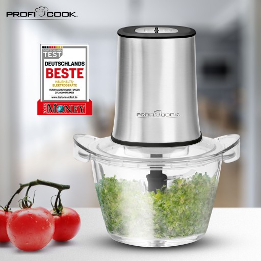 Elektryczny rozdrabniacz ProfiCook PC-MZ pozwala na siekanie różnego rodzaju produktów spożywczych.