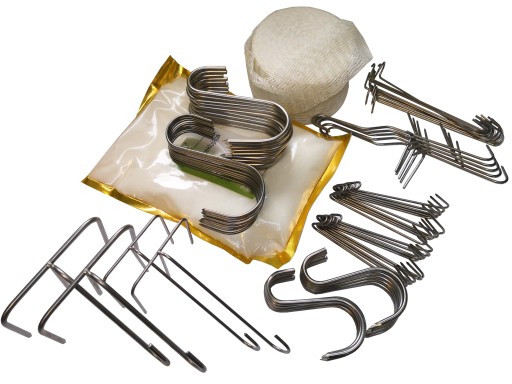 Witam, oferuje ładny dość spory zestaw haków wędzarniczych do wędzenia ryb , boczków , szynek , kurczaka , płatów ryb i mięsa z siatką do wędzenia i solą peklującą .