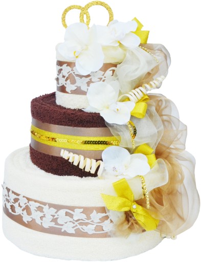 Zapraszamy do zakupu oryginalnego i eleganckiego prezentu jakim jest tort z ręczników. To doskonały prezent na ślub, rocznicę ślubu, urodziny, podziękowania dla rodziców. Doskonały, jako dodatek do "koperty" i prezent zamiast kwiatów. Tort z ręczników jest tak piękny jak bukiet, ale będzie cieszył oko dłużej. To bardzo ładny i równocześnie praktyczny prezent. Po jego rozwinięciu obdarowani będą się cieszyć miękkimi, grubymi i chłonnymi ręcznikami.
