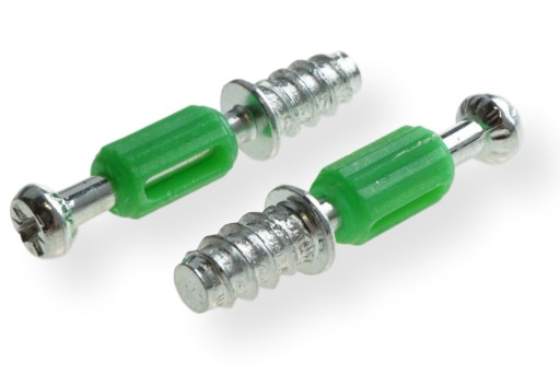 Montaż dokonuje się poprzez wywiercenie otworu Ø 15 mm, w płycie którą chcemy połączyć oraz otworu na trzpień o średnicy 7,5 mm, następnie dokonujemy montażu trzpienia w dolnej części bezpośrednio w płytę lub drewno dla gwintu euro, dla gwintu M6 należy dokupić mufę tworzywową lub metalową, dla trzpienia wbijanego wciskamy w otwór fi 8. Po montażu trzpienia zakładamy mimośród w otwór fi 15 i dokonujemy jego przekręcenia w celu złączenia 2 elementów.