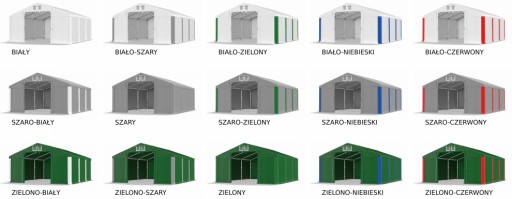 biały, biało-szary, biało-zielony, biało-niebieski, biało-czerwony, szaro-biały, szary, szaro-zielony, szaro-niebieski, szaro-czerwony, zielono-biały, zielono-szary, zielony, zielono-niebieski, zielono-czerwony