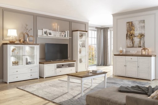 Komoda to podstawowy element wyposażenia salonu lub sypialni. Połączenie białego matu z odcieniem dębu tworzy rewelacyjny duet, który świetnie sprawdzi się w prowansalskich wnętrzach. Trzy części zamknięte skrywają półki, gdzie wygodnie ułożysz ubrania, zastawę stołową bądź książki. (kod produktu: ###51292###)