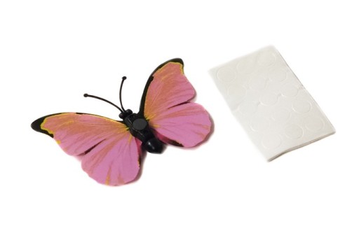 - Na magnes można nakleić odpowiednio dociętą w kształcie kółek taśmę klejącą dwustronną. Umożliwia to przyklejenie motylka do niemetalowej powierzchni. Taśma dobrze trzyma na powierzchniach gładkich, śliskich, plastikowych.