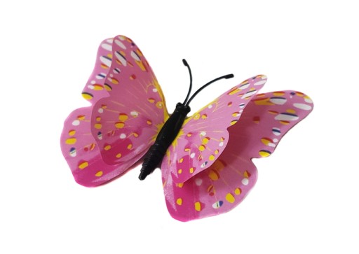 - wymiar (umożliwia porównanie z pozostałymi elementami) motyla ukazanego na zdjęciu (pojedynczy, zwrócony w prawą stronę) to około 8 x 6 cm (szerokość skrzydeł x długość całkowita)