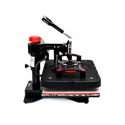 Podniesiona górna płyta pozwala na łatwe umieszczanie i wyjmowanie koszulek z maszyny.