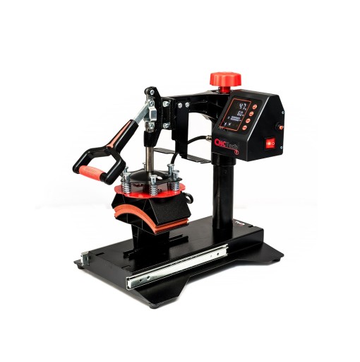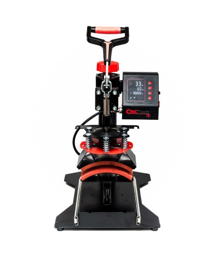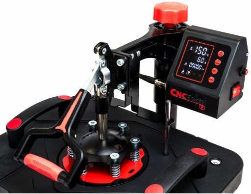 Cyfrowy zegar sterujący jest regulowany do 999 sekund. Cyfrowy miernik temperatury działa w zakresie od 0 - 250 ° C. Wyposażona jest w automatyczny regulator temperatury, wyłącznik czasowy, który po odmierzeniu zadanego czasu uruchamia sygnał dźwiękowy oraz sprężynowy mechanizm płynnej regulacji siły docisku prasy.