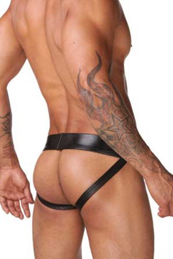 Erotyczna bielizna dla prawdziwych mężczyzn. Czarne lateksowe majtki z otwartym tyłem. Facet w tym stroju pobudzi każdą kobietę. Jest to doskonały sposób by zaskoczyć swoją partnerkę. Idealne również dla striptizerów / czipentejsów. Męska bielizna erotyczna ! To to czego pragnie każda kobieta.