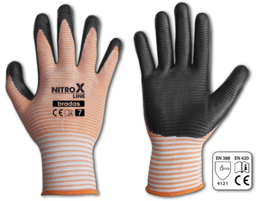 Rękawice powlekane nitrylem, o prążkowanej powierzchni.