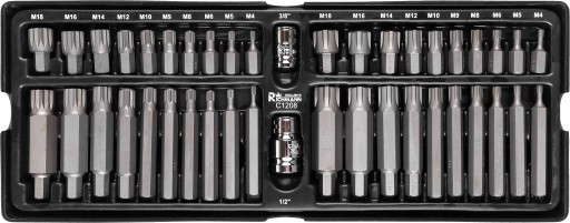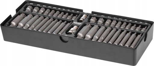 - Zestaw 42-elementowy bitów i nasadek umieszczony we wkładzie do wózka warsztatowego typu A.
