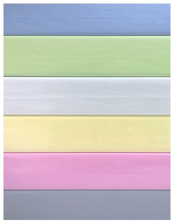 Biały, Ecru, Żółty, Zielony, Niebieski, Turkusowy, Różowy, Szary, Beżowy i Brązowy.