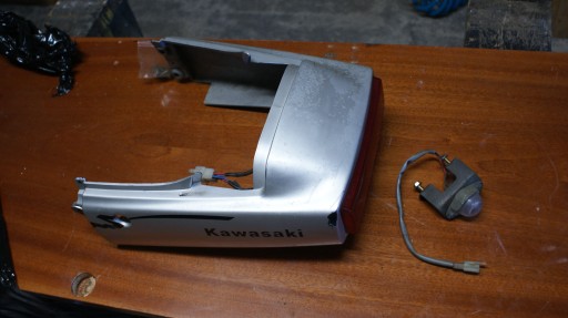 Witam! Oferuje w pełni sprawny zadupek ogon owiewka tył do Kawasaki GPZ 500s przed liftem do 1994r, wszystkie mocowania całe, nie połamane, kilka rys na lakierze jak na foto, owiewka była malowana na srebrno, w komplecie oświetlenie tablicy rejestracyjnej i lampa tył.