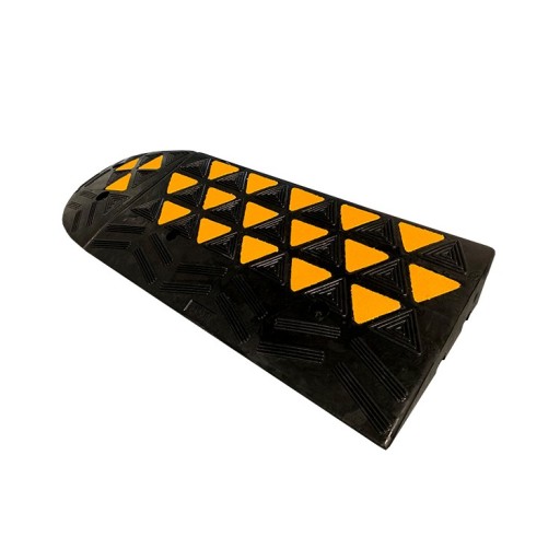 Najazd krawężnikowy - zakończenie wykonano z trwałej gumy. Podjazd pozwala na płynny i swobodny przejazd przez podwyższenia, pełni funkcję rampy. Najazd kauczukowy niweluje ryzyko wystąpienia uszkodzeń powierzchni pojazdów, umożliwia przedostanie się na wyżej usytuowany krawężnik.