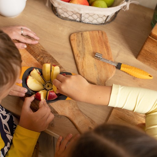 Jeśli lubisz owoce z rdzeniem bez konieczności ich krojenia, to stylowa korowarka do jabłek jest tym, czego szukasz. Usuwanie rdzenia może być żmudne, w zależności od narzędzi,których używasz! Sam nóż działa wystarczająco dobrze, ale zajmuje dużo czasu. Tutaj do gry wchodzi wykrawacz do warzyw. Jej ostra, ząbkowana krawędź z łatwością przebija się przez jabłko,gruszkę,pomidora,ziemniaka czy ananasa. Tylko 3 proste ruchy - popchnij,przekręć i pociągnij... i gotowe! Dzięki temu narzędziu w kilka minut przygotujesz pyszne przekąski i domowe frytki dla całej rodziny.