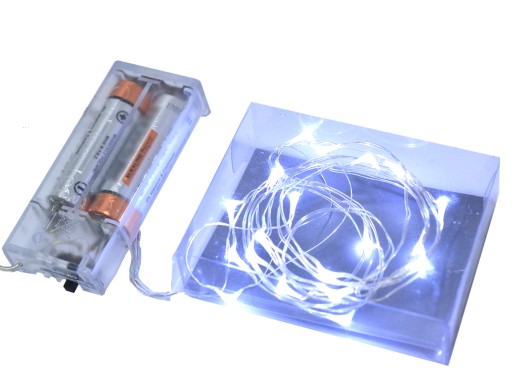 LAMPKI CHOINKOWE 20 LED NA DRUCIKU NA BATERIE BIAŁE ZIMNE ŚWIATŁO.