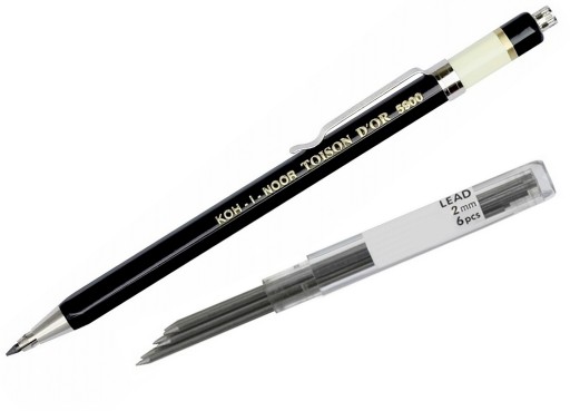 CAŁY METALOWY OŁÓWEK NA GRAFITY 2 MM Z SERII VERSATIL 5900 CZESKIEJ FIRMY KOH I NOOR + OPAKOWANIE GRAFITÓW 2MM (6 SZT)