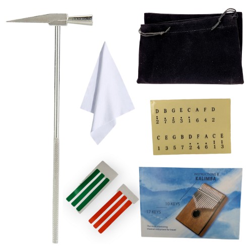 Zestaw zawiera młoteczek do strojenia instrumentu. Za pomocą lekkich stuknięć w blaszkę od dołu lub od góry zmieniamy ton danego klawiszu/blaszki.