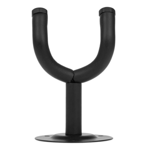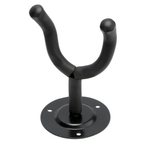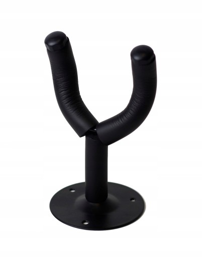 Uchwyt na gitarę ścienny, montowany na płytce wykonany z pręta stalowego pokrytego miękkim sylikonem. Uchwyt na gitarę malowany proszkowo, kolor czarny mat. Wykończenie odporne na zadrapania i na uszkodzenia.