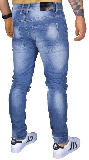 Model ma na sobie rozmiar 31; waży 85kg i ma wzrostu 180 cm