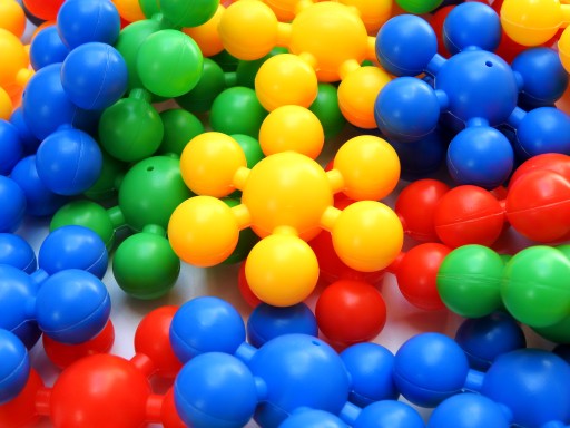 Klocki do budowania w postaci kwiatków - kulek z 6 płatkami.